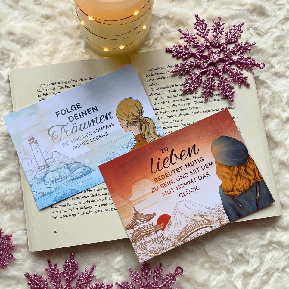 Wir schenken dir zwei hochwertige Lesezeichen, die dich auf deiner Reise durch das Buch begleiten – und vielleicht auch ein Stück auf deiner eigenen.